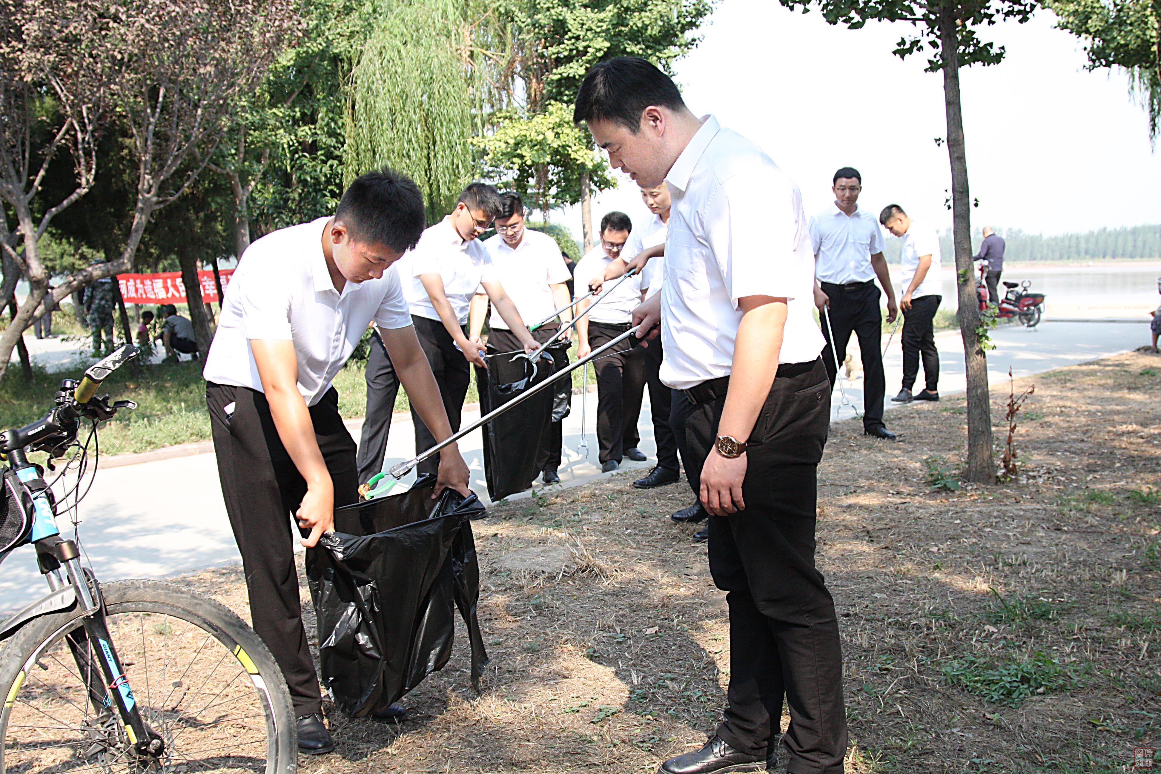 祭奠仪式后,参加活动的领导和全体代表共同清扫碑体、捡拾周边垃圾,用实际行动表达对母亲河的爱护。