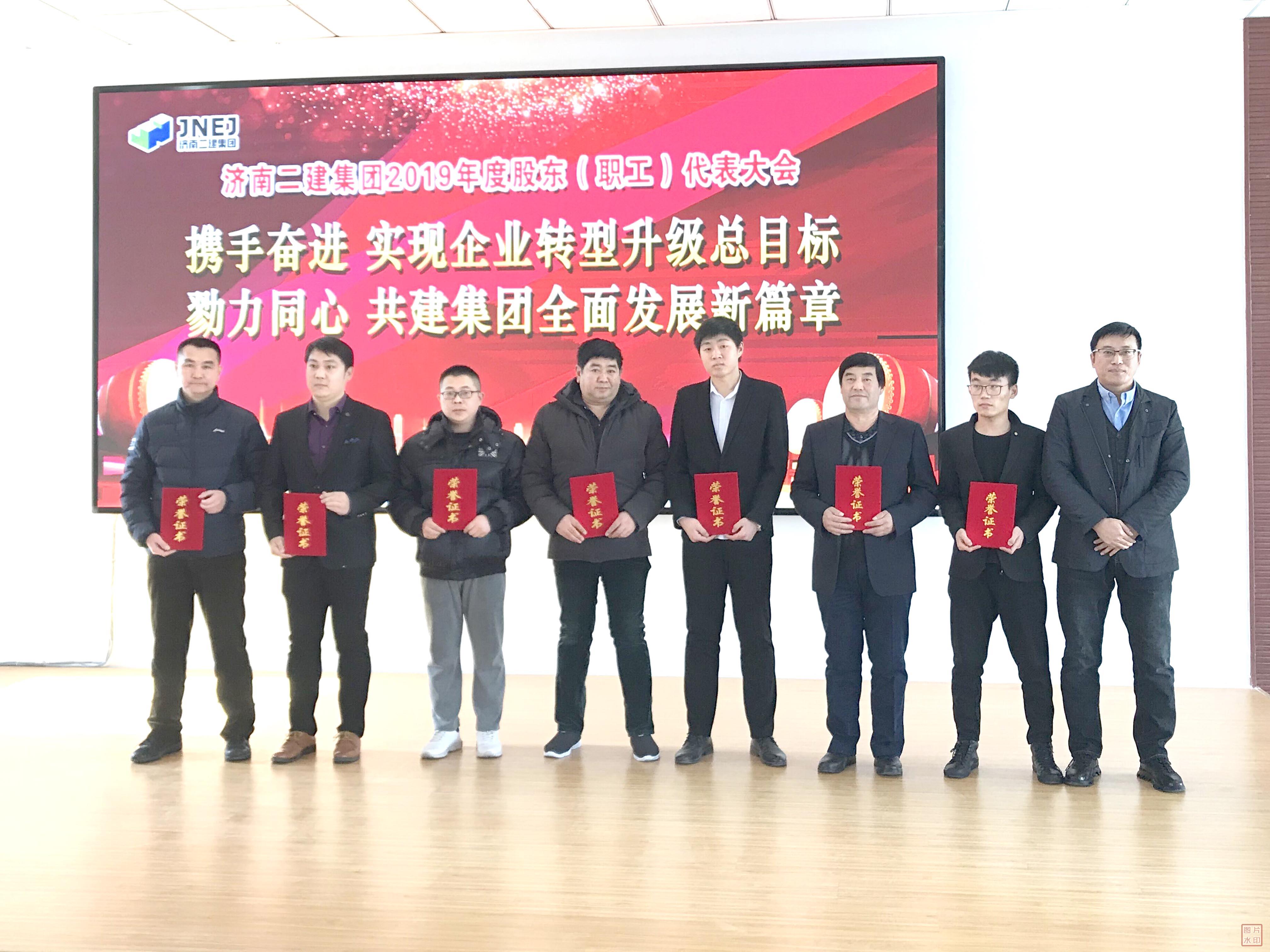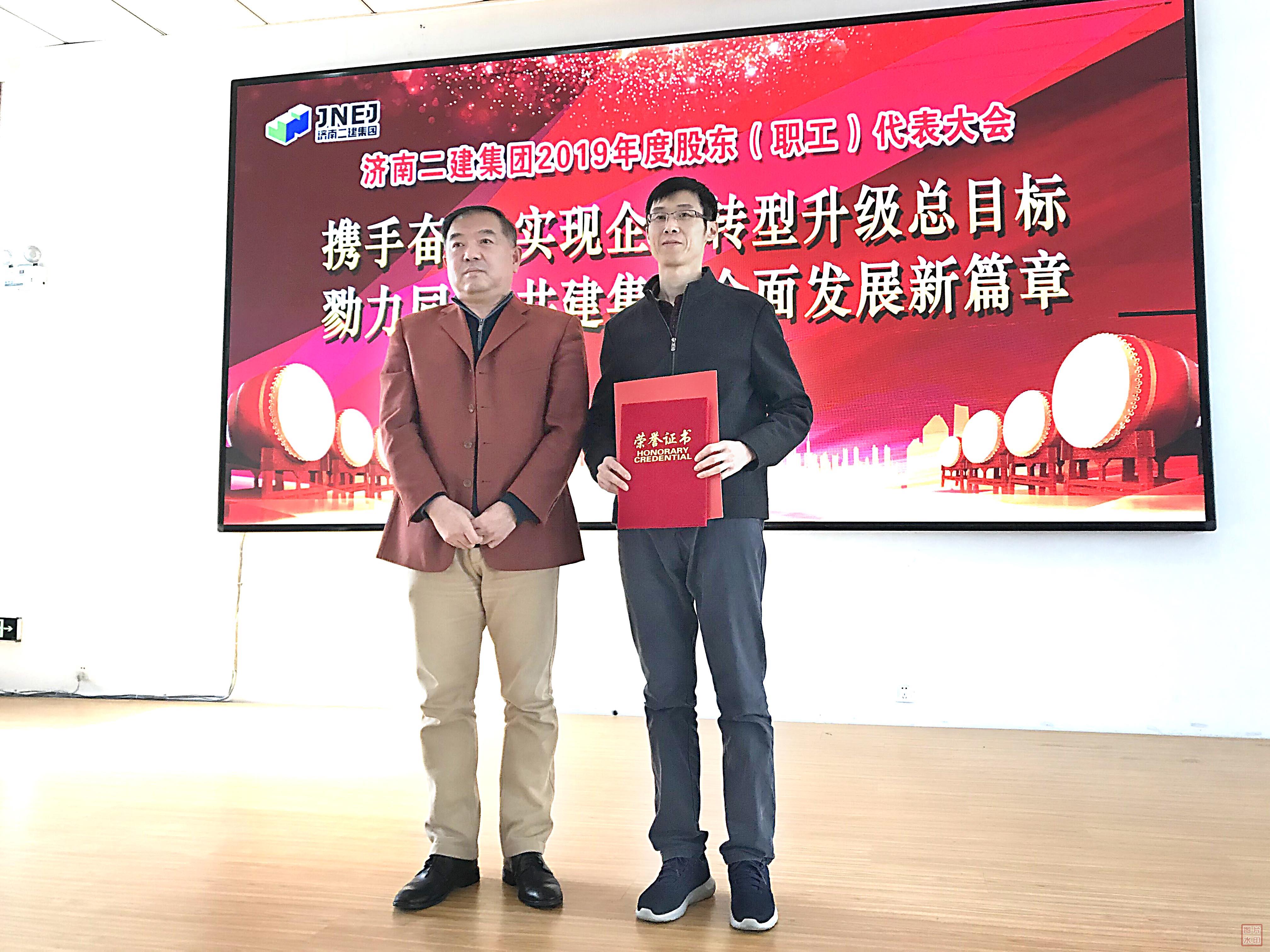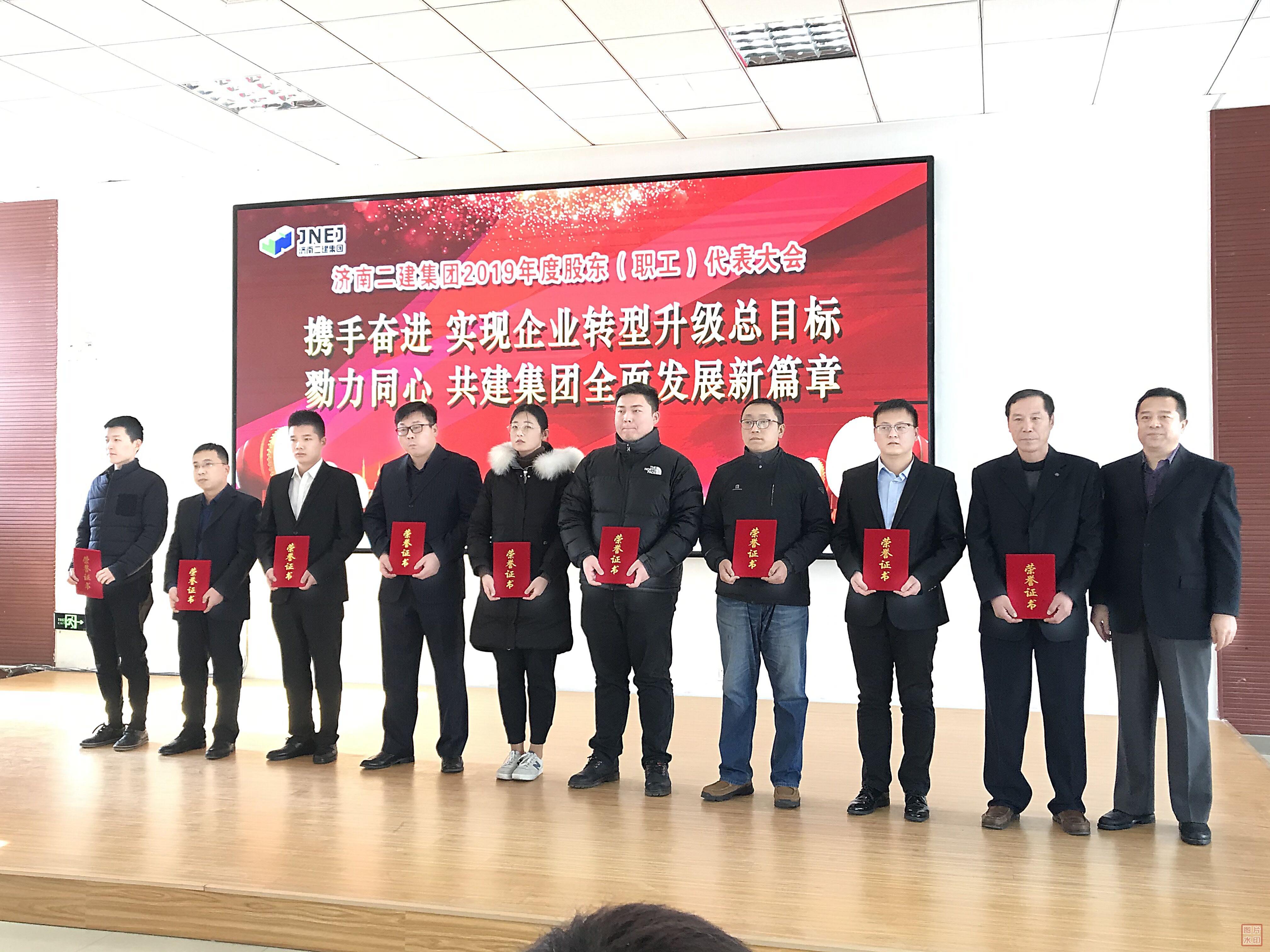 董建胜副总经理为荣获集团公司2019年度优秀员工的第七组代表颁发荣誉证书