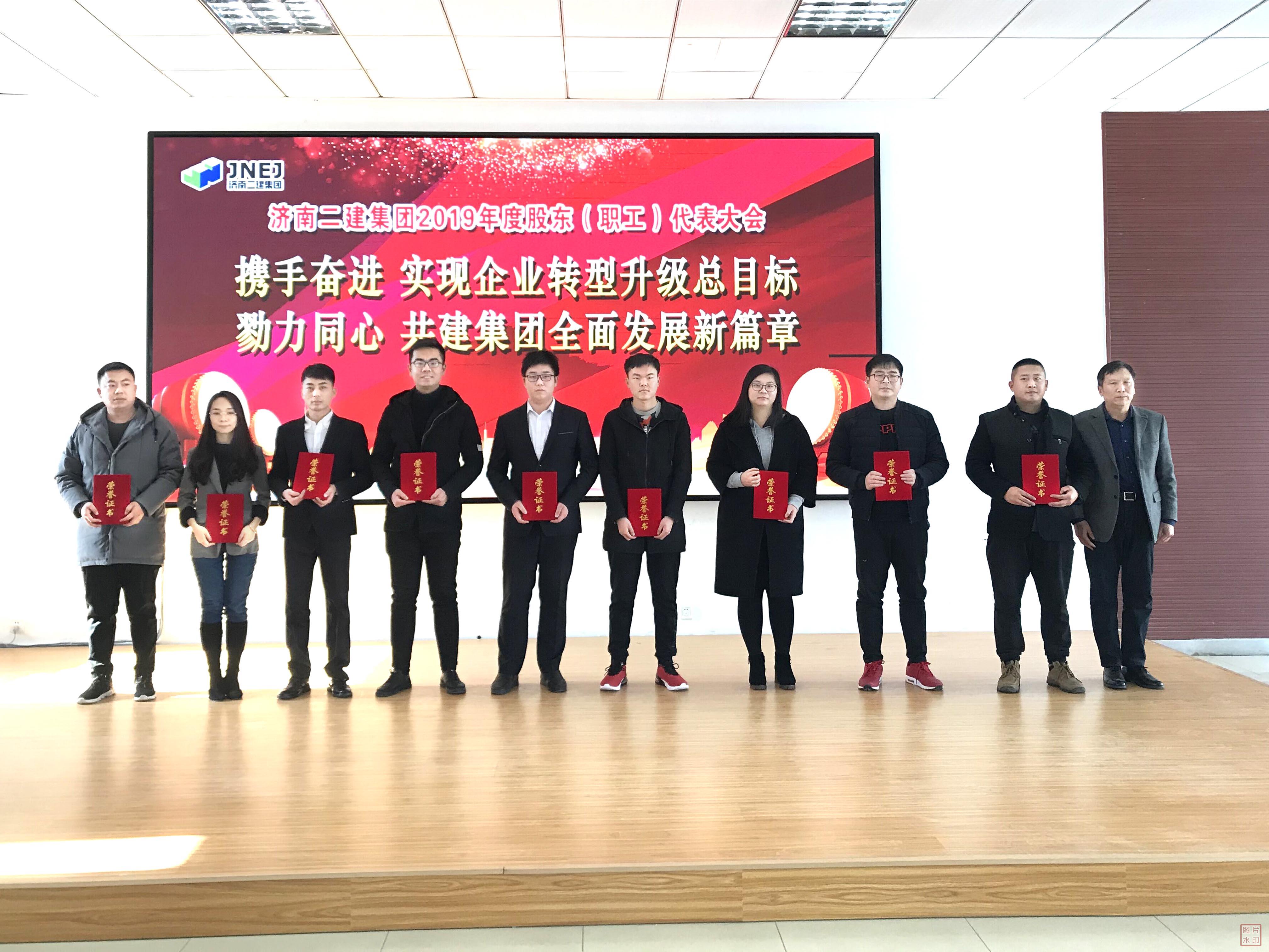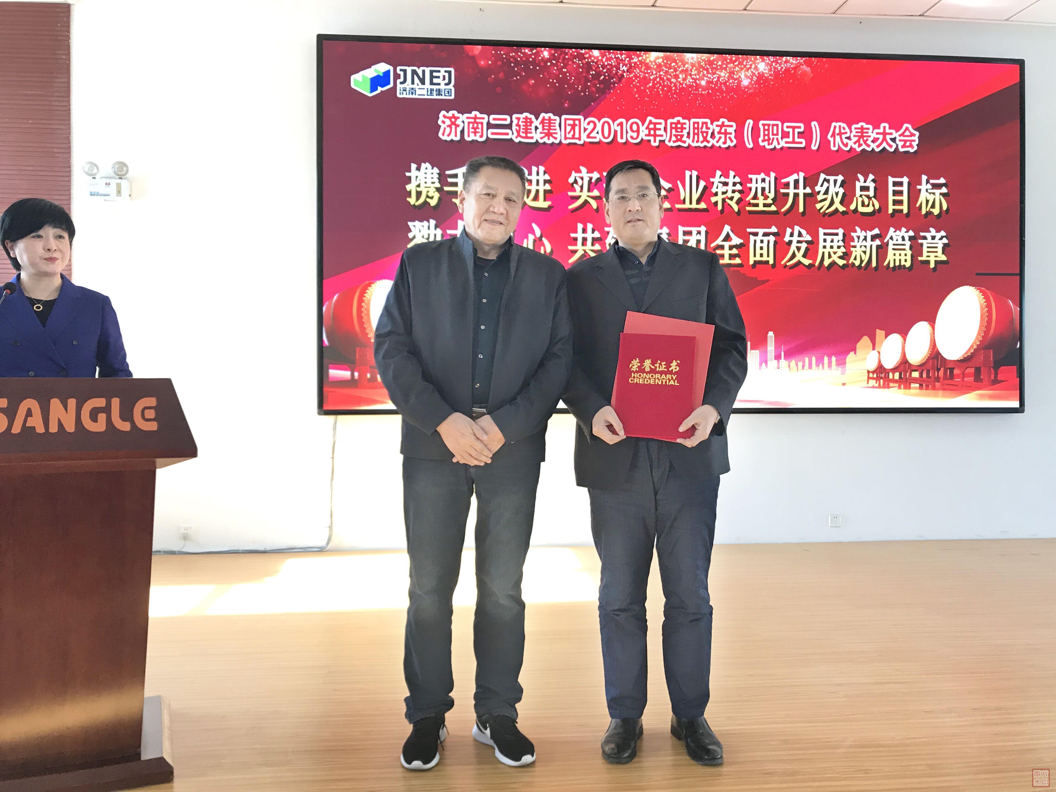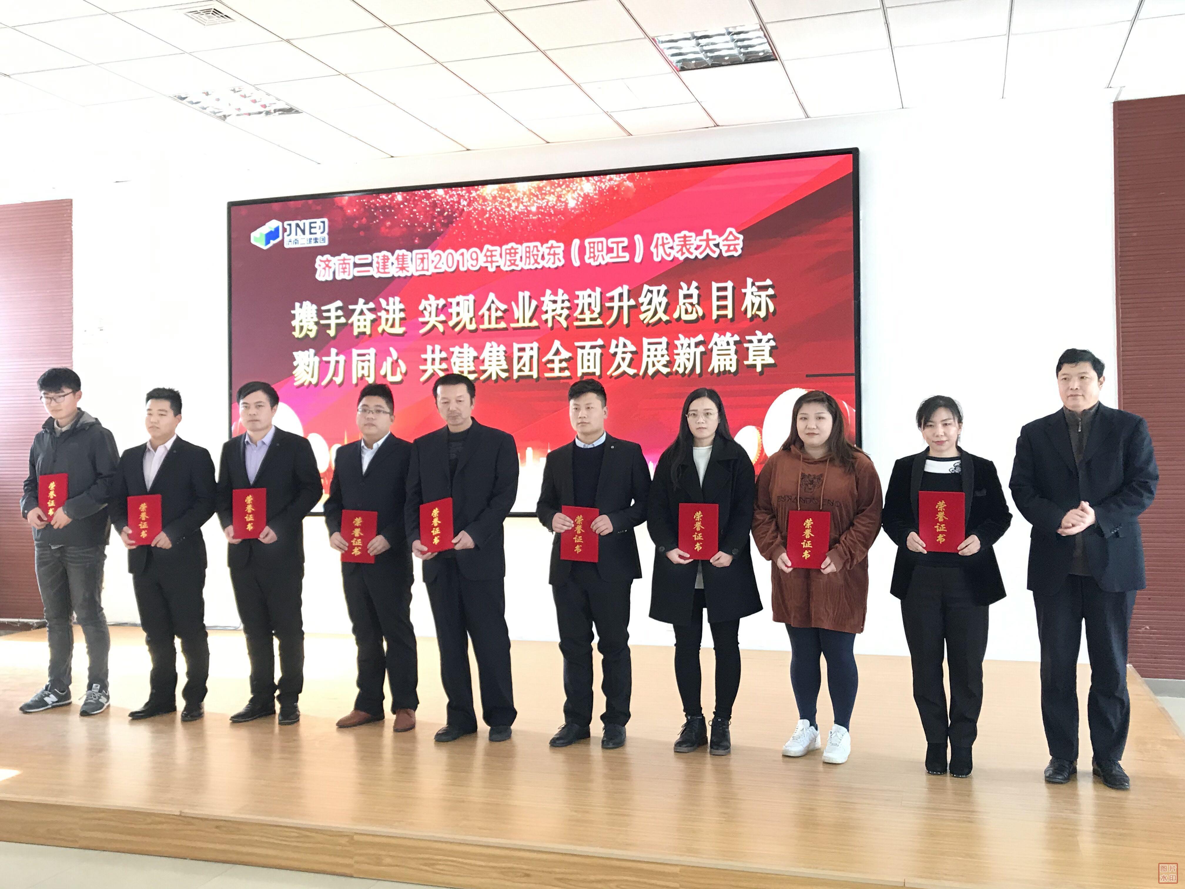董建胜副总经理为荣获集团公司2019年度优秀员工的第七组代表颁发荣誉证书