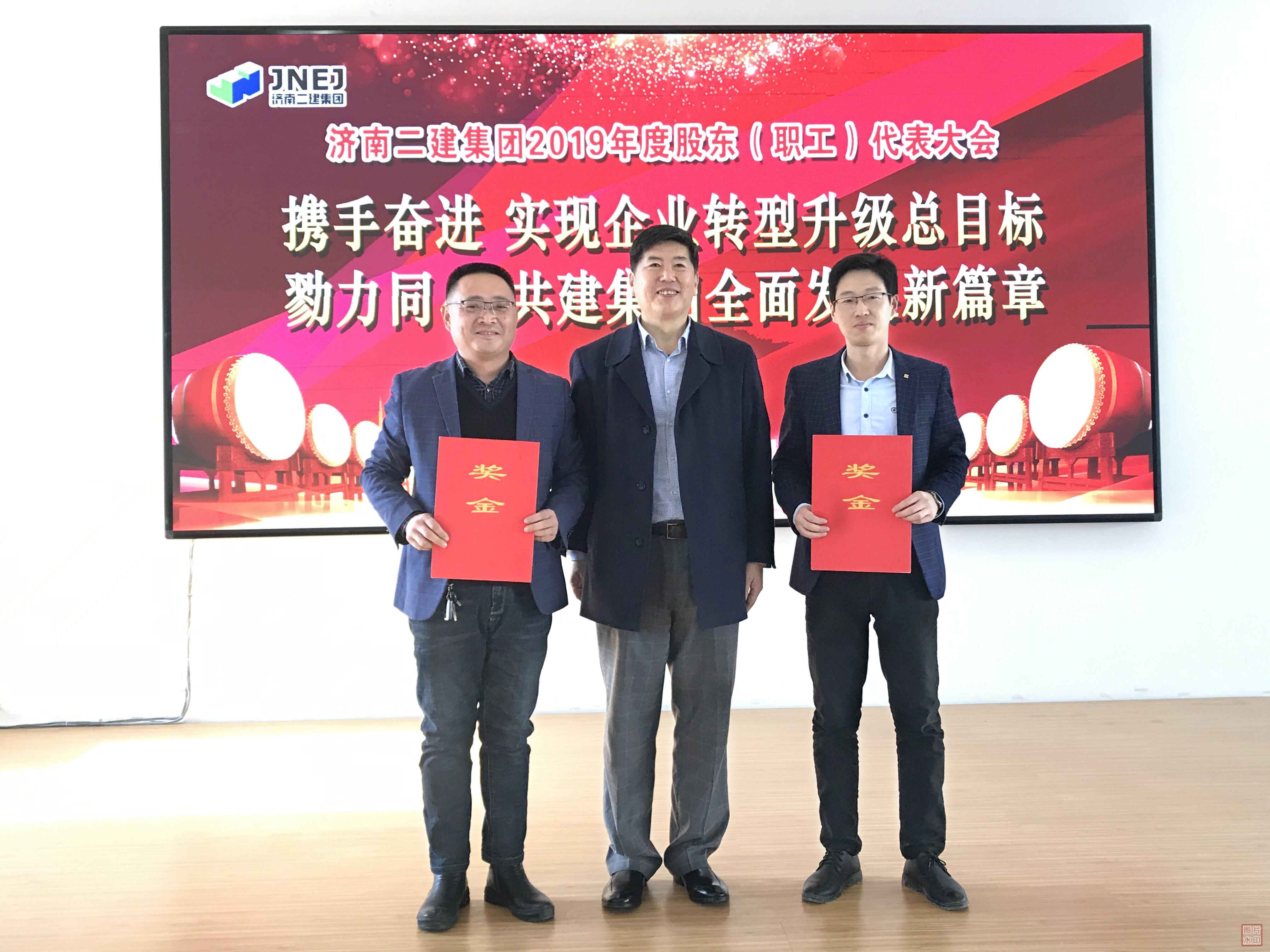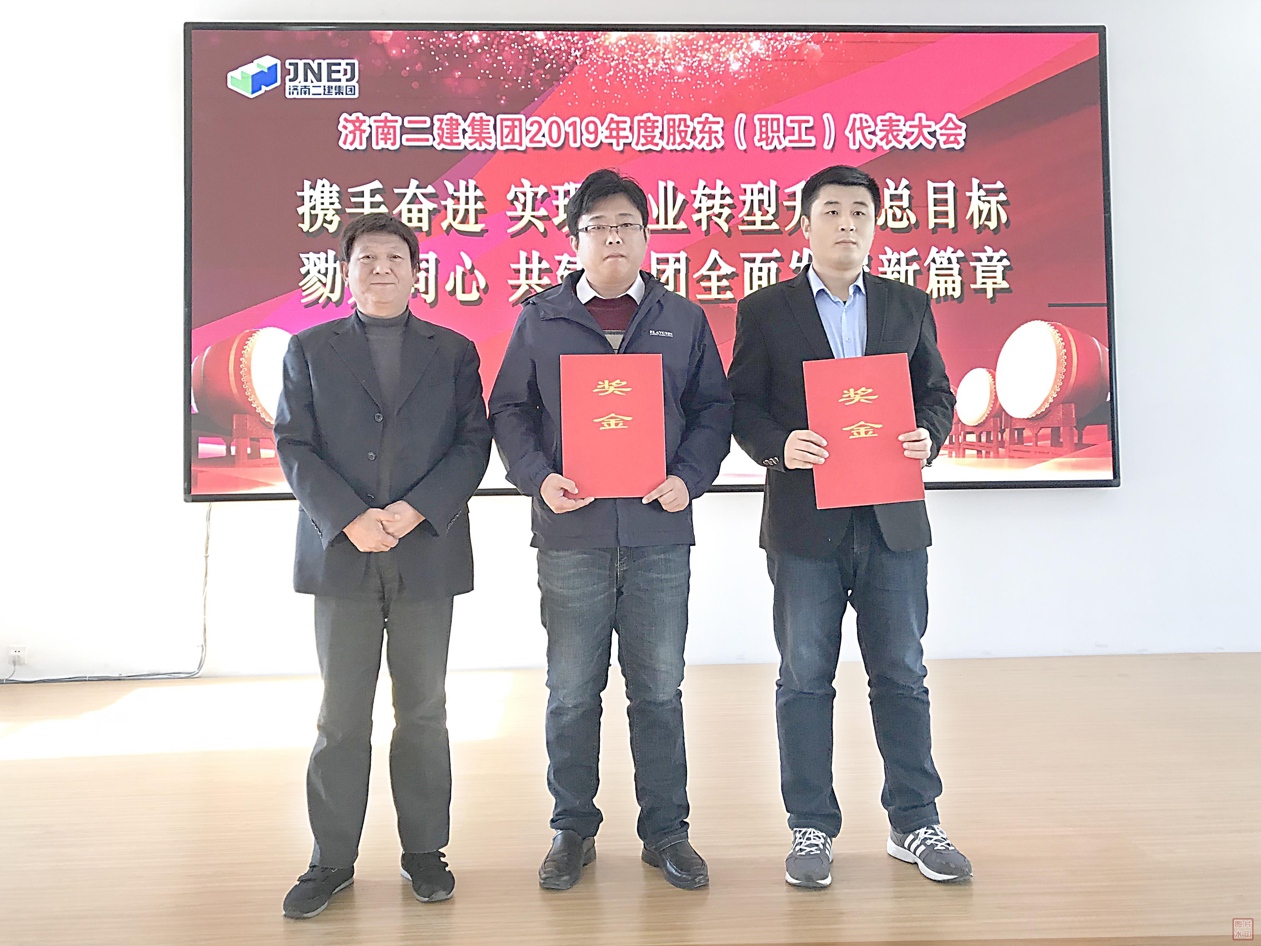 王董事长为荣获集团公司2019年度优秀单位的第六工程分公司(余建文)、第七工程分公司(李玄吉)、
