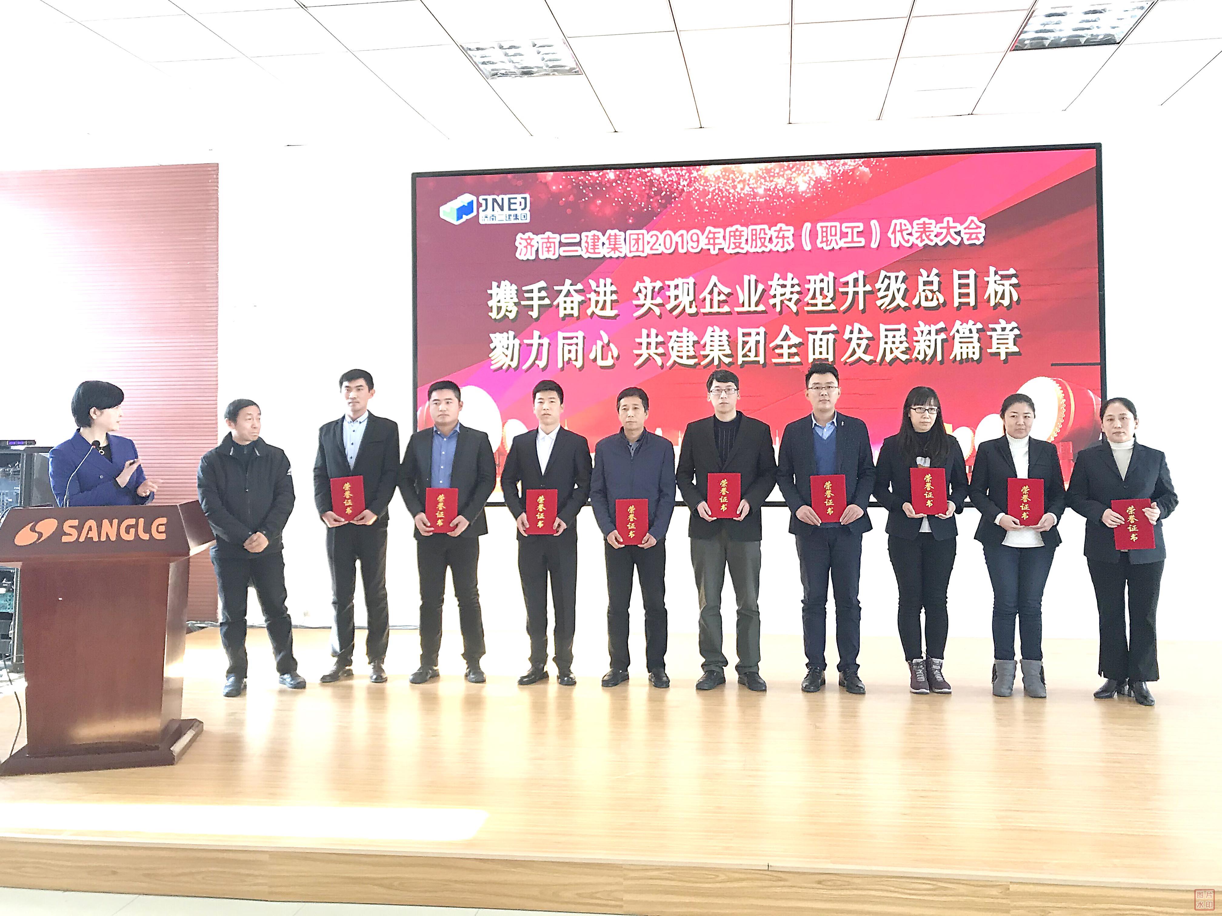 宋立新副总经理为荣获集团公司2019年度优秀员工的第二组代表颁发荣誉证书