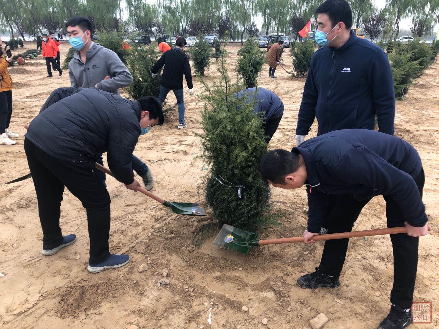 同事们井然有序的按照指挥要求,到指定地点领取了植树工具,随后纷纷脱衣挽袖,在黄河岸边松软肥沃的土壤里手握锄头铁锨,刨坑栽苗;有的踏实培土、扶正浇水。转眼间在近200余名绿色志愿者忙碌了近一个小时,共种植近500余棵白皮松、雪松、白蜡。