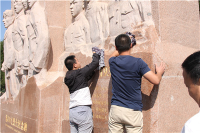 祭奠仪式后,参加活动的领导和全体代表共同清扫碑体、捡拾周边垃圾,用实际行动表达对母亲河的爱护。经过大家辛勤劳动,周围环境得到明显改善,为迎中秋、国庆创造了更好的游览氛围。