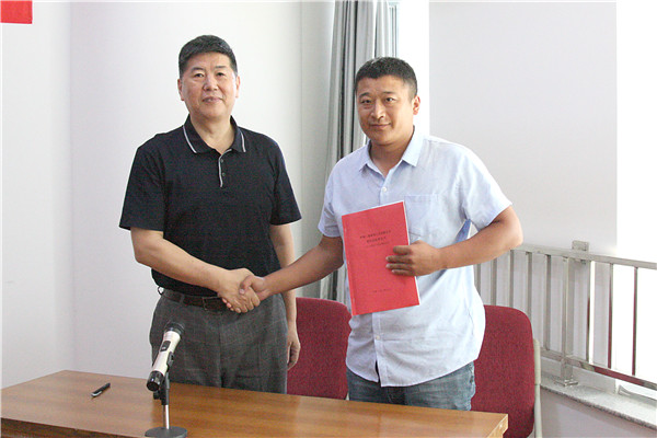 集团公司王雪广与王舍人安置房项目经理胡效阳签定目标责任书;