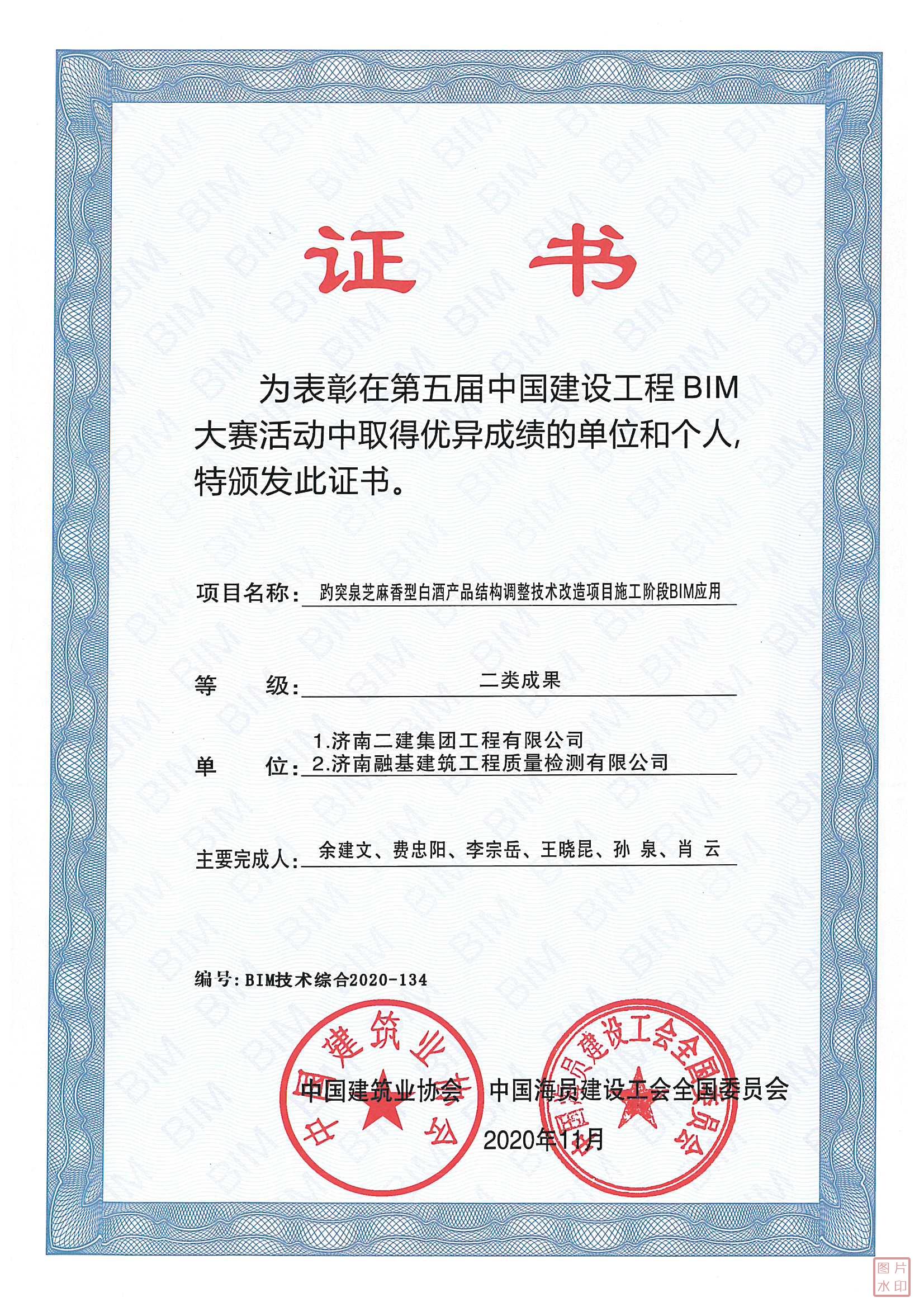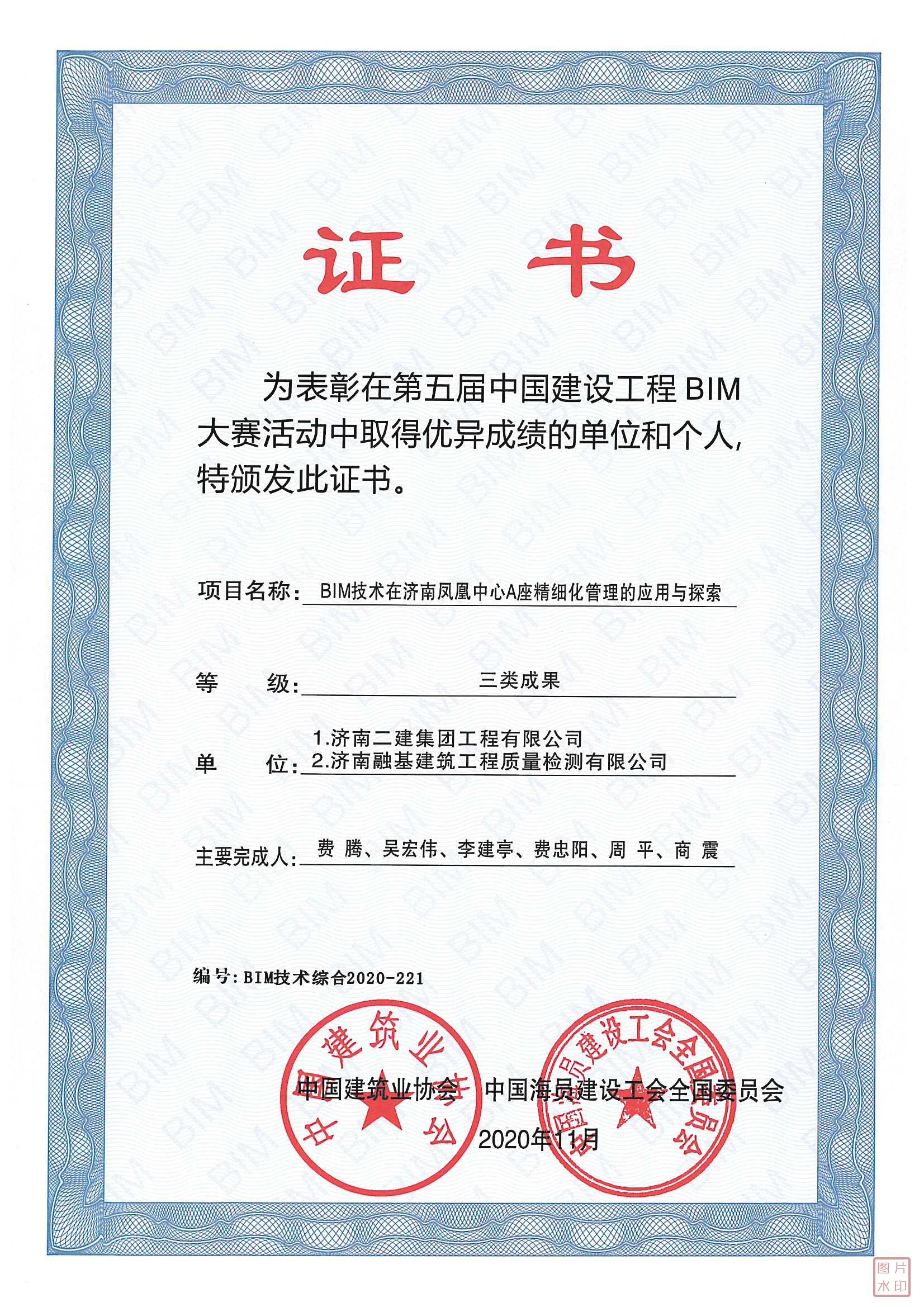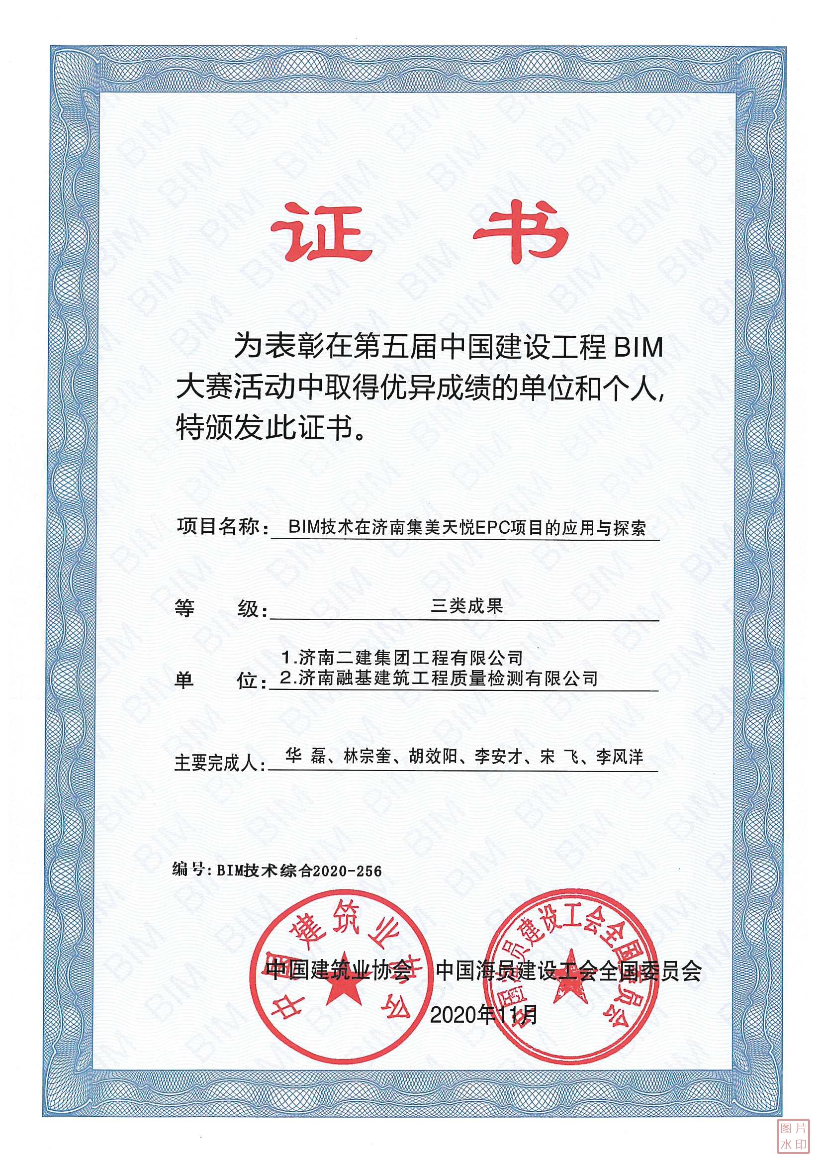 会议期间对第五届中国建设工程BIM大赛获奖单位和完成人进行了表彰。集团公司获得两项BIM技术综合奖二类成果,两项BIM技术综合奖三类成果。