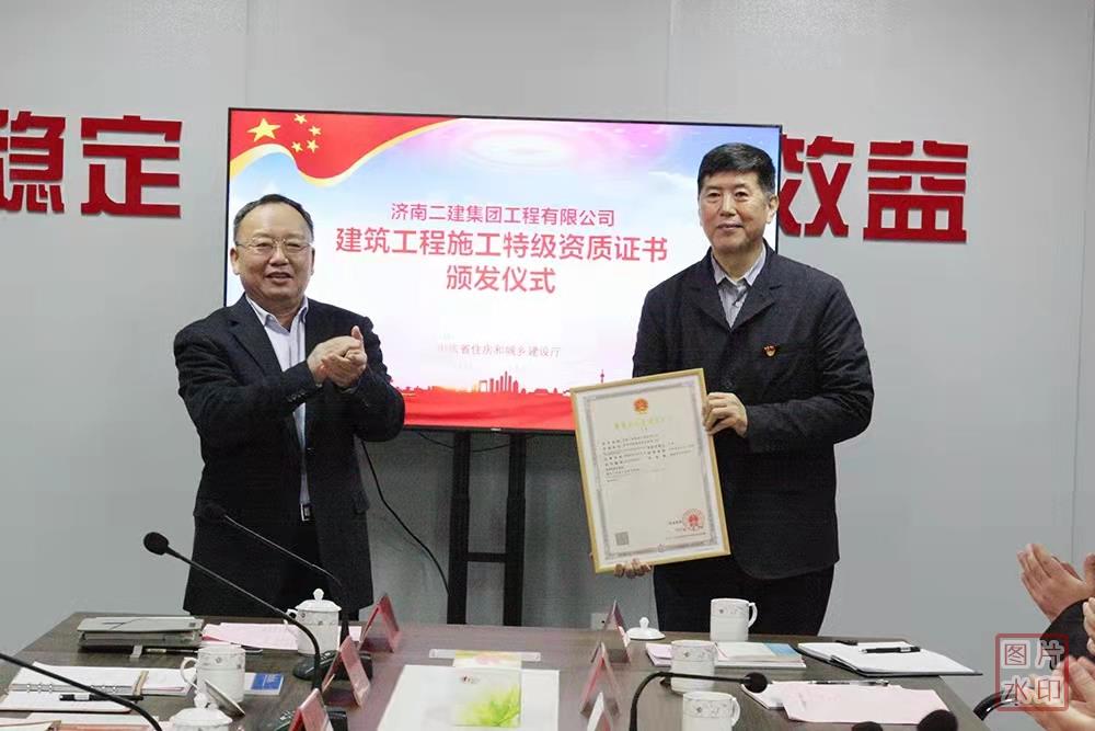 济南二建集团工程有限公司建筑工程施工特级资质证书颁发仪式