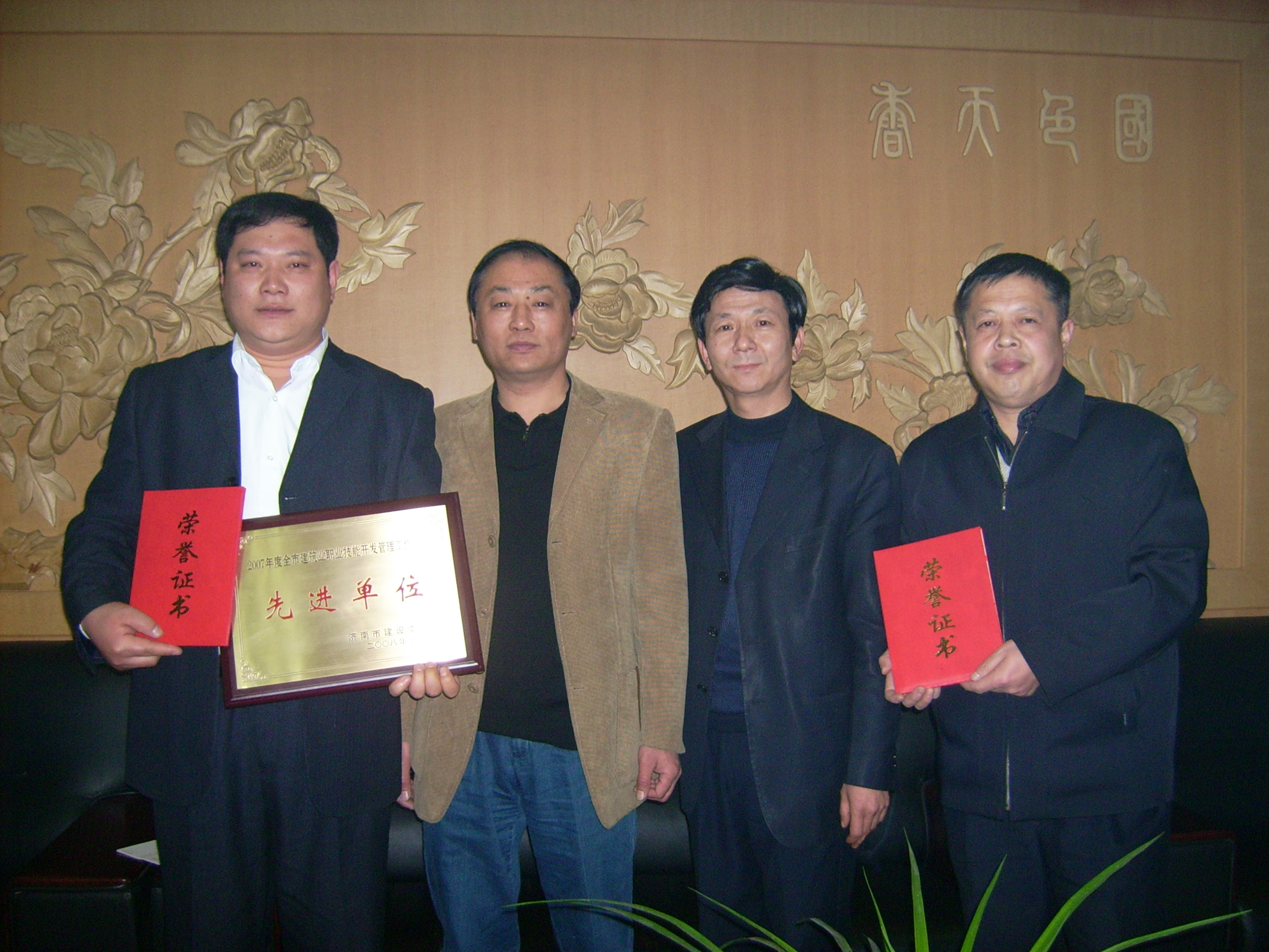 市建委领导为我公司颁发2007年度全市建筑业职业技能开发管理工作先进单位奖牌