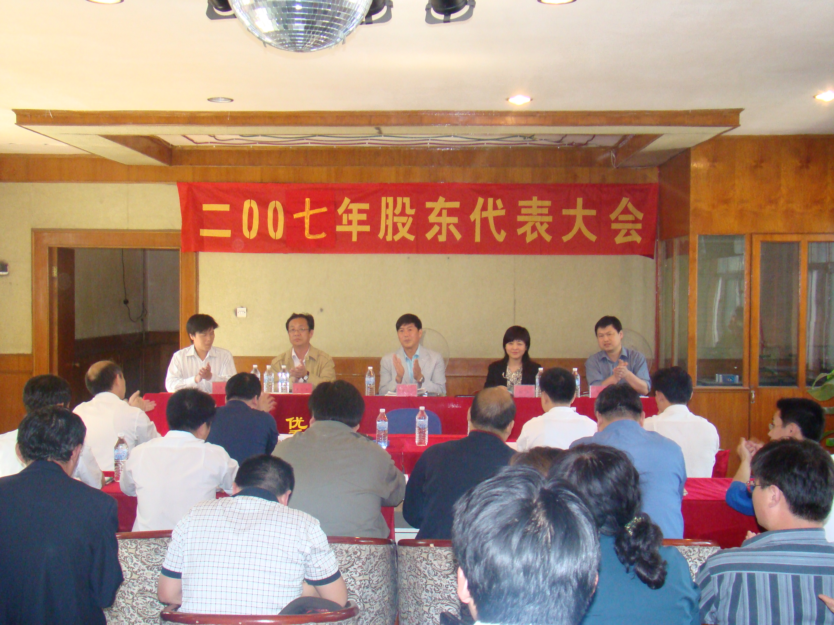 5月5日下午,集团公司第一工程有限公司2007年度股东代表大会顺利召开,集团公司王董事长出席大会,并就有关工作做出重要讲话。 集团公司执行总经理黄大勇、副总经理杨莹、第一工程有限公司股东代表参加了会议。