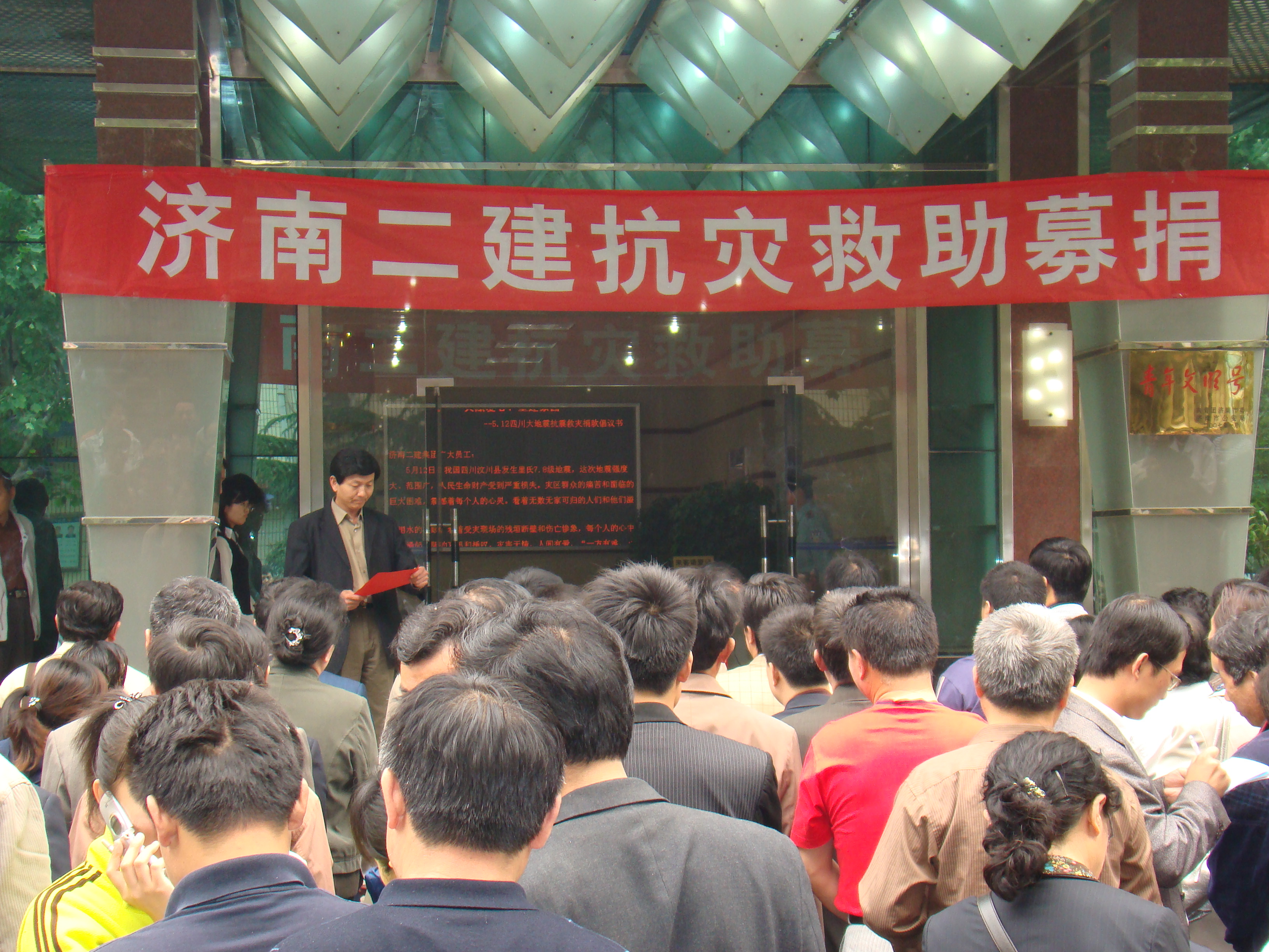 在震灾面前,集团公司党委、总工会发起号召,为灾区人民尽一份力。一双双援手伸出,一股股暖流涌动。集团领导带头捐款,广大员工积极响应,仅16日一天就捐款88780元。每一个人都在无声的表达着一个同样的信念:“一方有难,八方支援,万众一心,共渡难关”。在员工踊跃捐款的同时,集团也捐献价值100万元物资,用于灾区救助和重建。据了解,款项将通过有关部门尽快送达灾区。集团还将组织一系列捐助活动,协助灾区人民早日重建家园。
