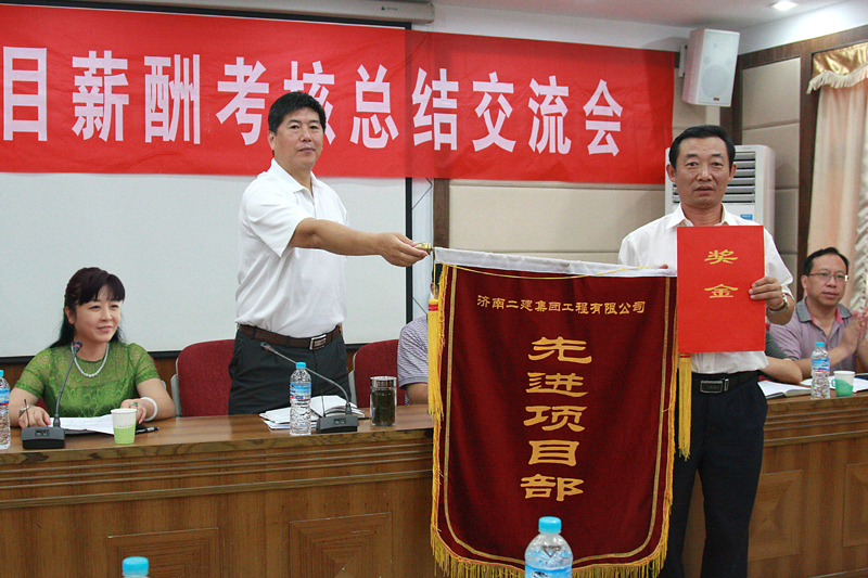 集团公司2013年7月份项目部薪酬考核总结交流会于8月24日上午召开。会议由杨莹副董事长主持。王同河副总经理汇报了集团公司7月份项目部薪酬考核情况。商卫执行总经理宣读了7月份薪酬考核表彰决定。对7月份薪酬考核取得第一名的第三工程分公司济南报业集团人才公寓目部进行了表彰,颁发流动红旗一面、奖金1万元。