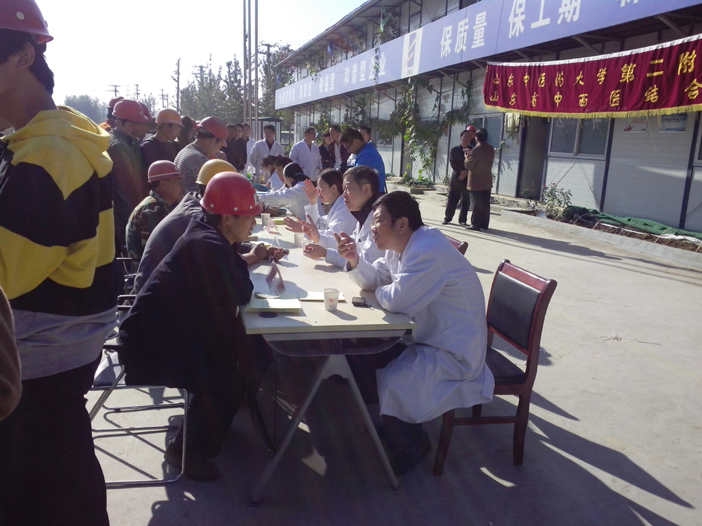 10月17日上午,市中区卫生局联合山东中医药大学第二附属医院,在山东济南养老服务中心项目隆重举行了“服务百姓健康巡回医疗点”揭牌仪式。市中区卫生局经过多方考察市中区所有建筑工地,从质量安全、文明施工现场等方面综合考核,养老中心项目以绝对优势被确定为市中区唯一指定巡回医疗点,卫生局医生和护士每周五天为工地上所有工人提供免费医疗服务。