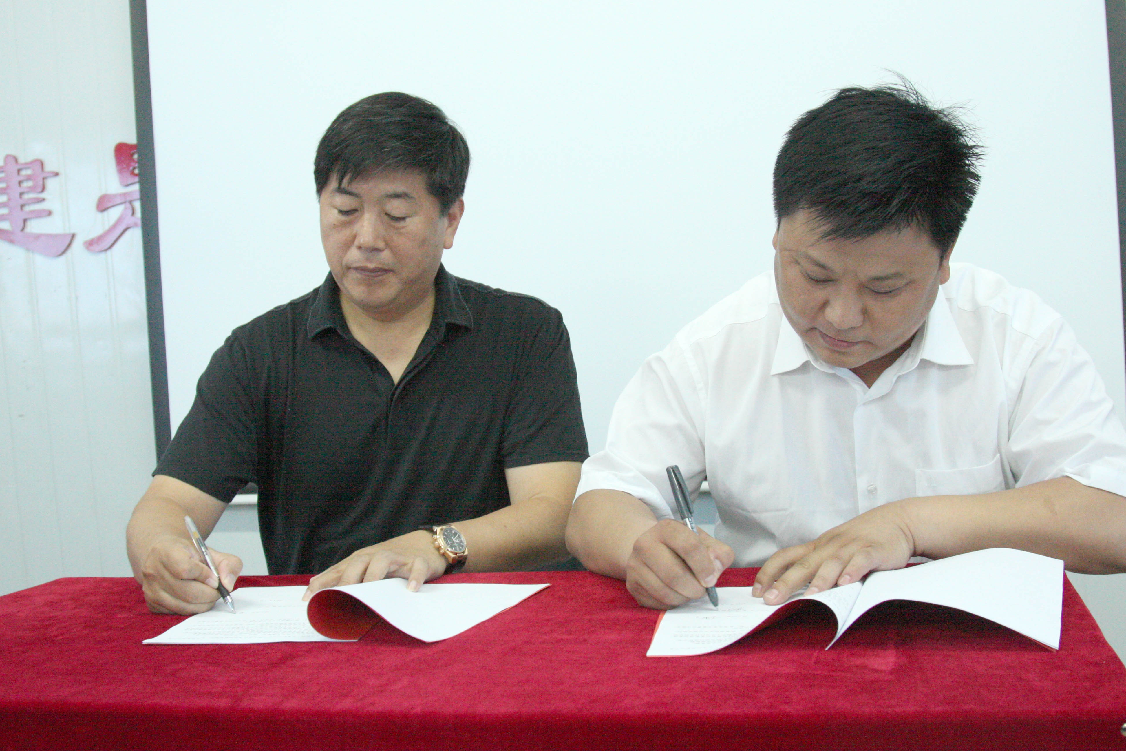 王董事长与第三工程分公司经理肖云签订报业集团人才公寓项目地块B工程《项目目标责任书》