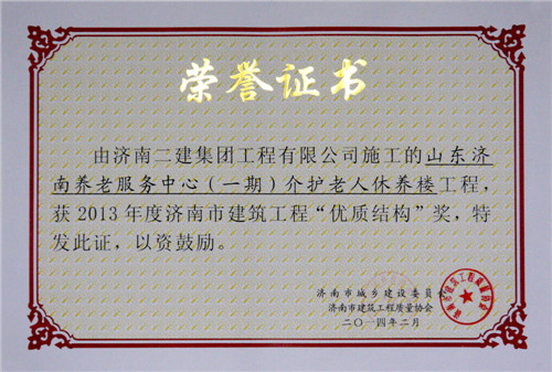 山东济南养老服务中心(一期)介护老人休养楼——优质结构奖。