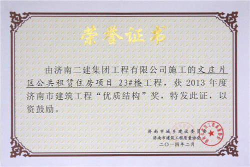 文庄片区公共租赁住房项目23#楼——优质结构奖