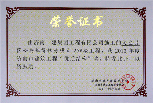 文庄片区公共租赁住房项目25#楼——优质结构奖