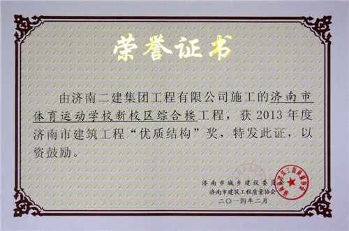 市体育运动学校新校区综合楼——优质结构奖