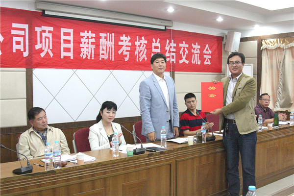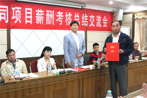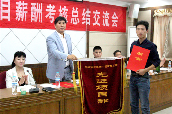 商卫执行总经理宣读了第四工程分公司施工的济南养老服务中心一期工程主体节点、第六工程分公司施工的中海•天悦府项目基础节点和第八工程分公司施工的尚品•燕园项目基础、主体节点成本兑现决定并颁奖。