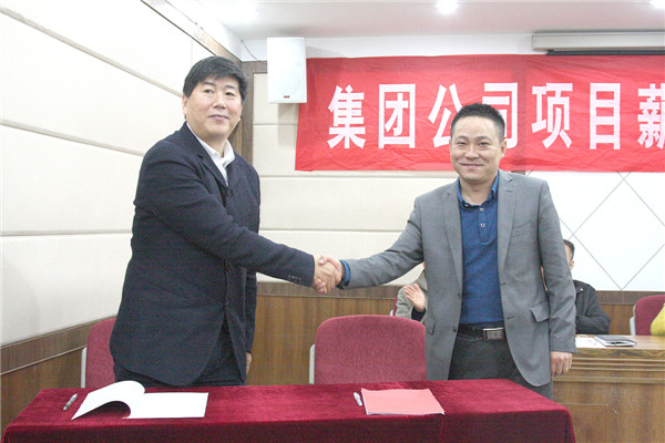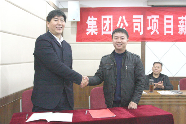 王董事长与第十一工程分公司商长恒经理就中海华山珑城主包工程Ⅳ标段工程签订《项目目标责任书》;