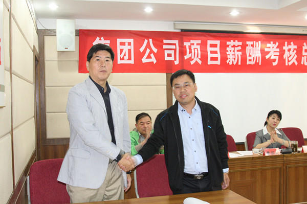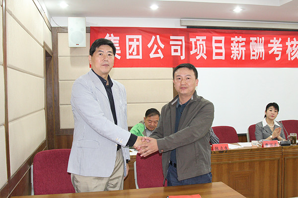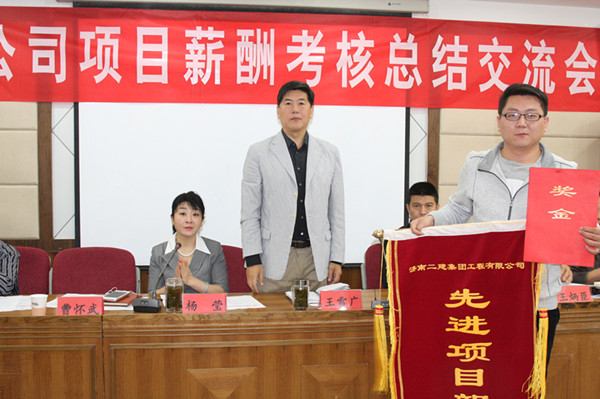 商卫执行总经理宣读了4月份薪酬考核表彰决定,对4月份薪酬考核取得第一名的第七工程分公司北大槐树项目部进行表彰,颁发奖金1万元和流动红旗一面;