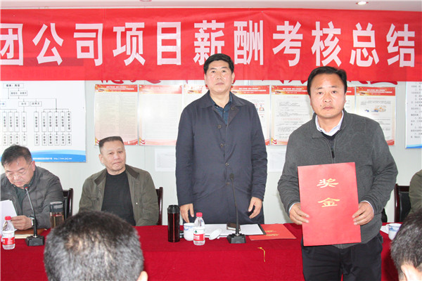 王董事长为第五工程分公司施工的恒大滨河左岸南9地块项目颁发基础节点兑现奖