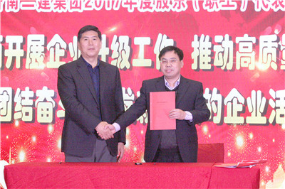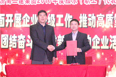 董事长王雪广先生分别与一分公司经理蔡元宝、集团公司副总兼三分公司经理肖云、四分公司经理周海青、五分公司经理王凯、六分公司经理余建文、七分公司经理李玄吉、十分公司经理侯保健、集团公司副总兼十一分公司经理商长恒签订《2018年度目标责任书》。