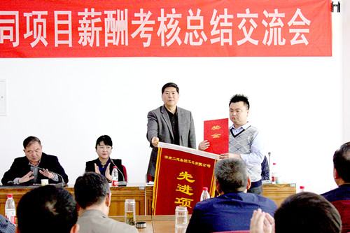 商卫执行总经理宣读了4月份薪酬考核表彰决定,对4月份薪酬考核综合评价第一名的第六分公司众海车间项目部进行表彰,颁发奖金1万元和流动红旗一面;
