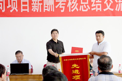 寇学武常务副总经理宣读了5月份薪酬考核表彰决定,对5月份薪酬考核综合评价第一名的第七分公司蓝海领航项目部进行表彰,颁发奖金1万元和流动红旗一面;